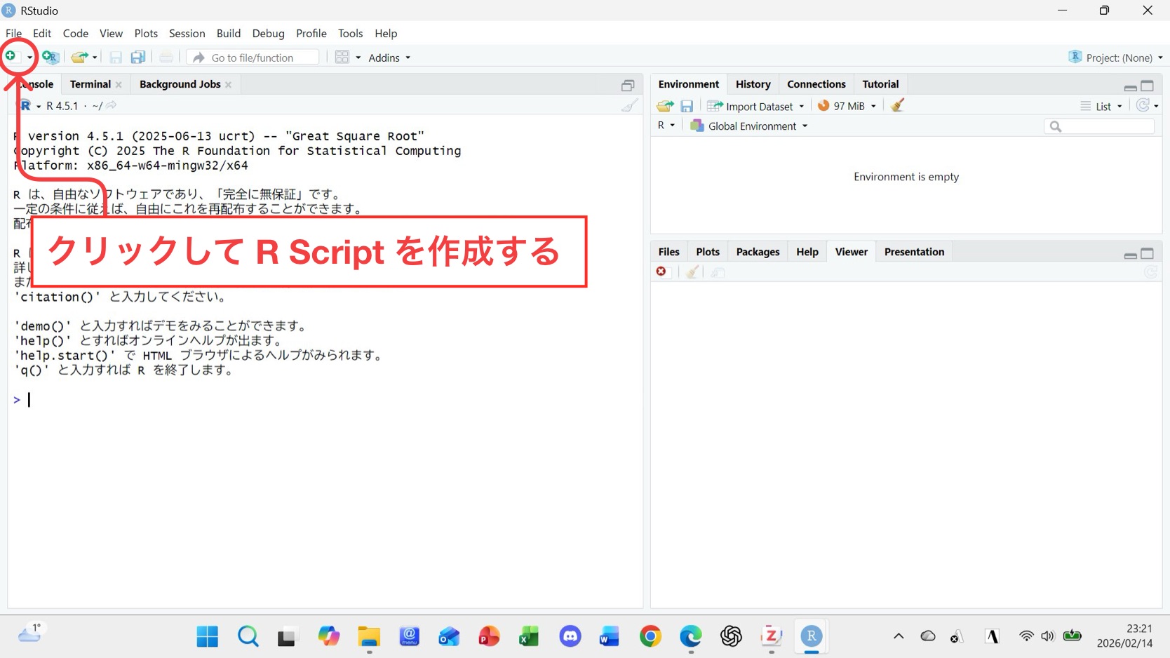 *本資料はRおよびR Studioをダウンロードした前提で進める。 今からダウンロードする場合、ネット上にダウンロード方法が説明されたWebサイトが多数存在するため、まずはそちらを参照されたい。